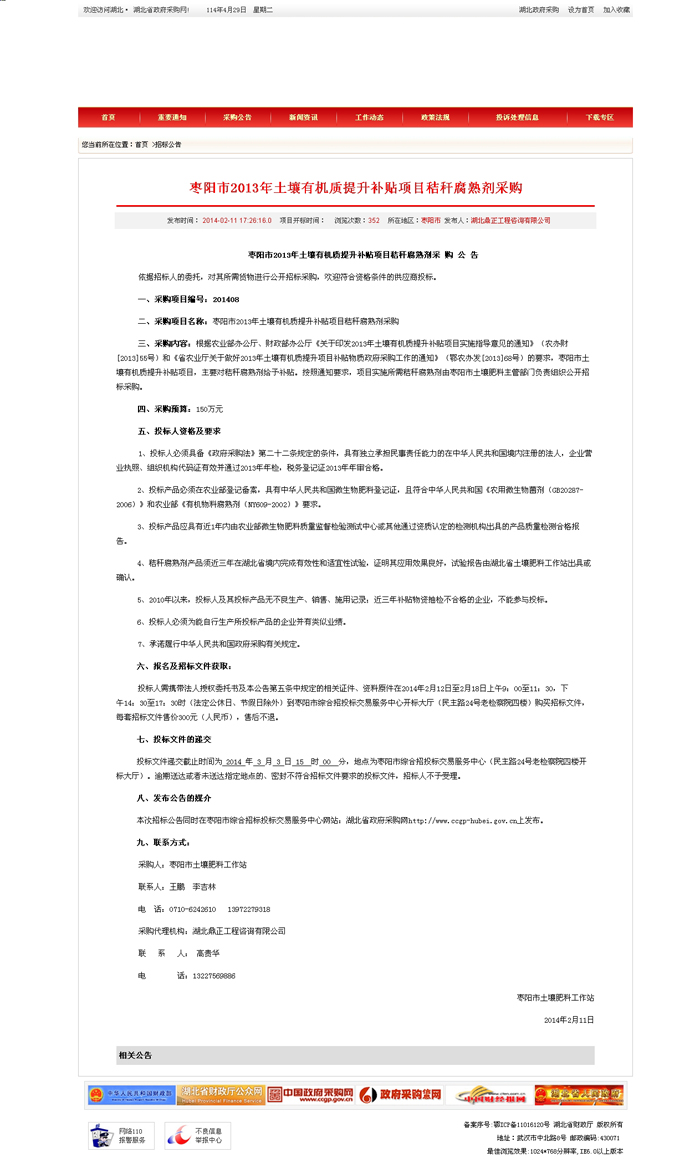 枣阳市2013年土壤有机质提升补贴项目秸秆腐熟剂采购