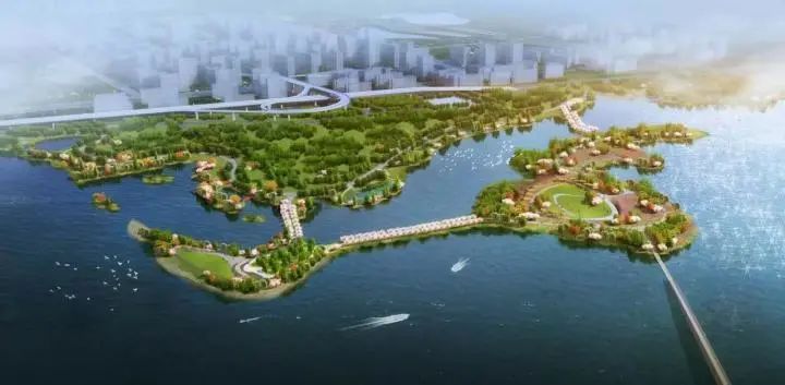 化面积113.5 万平方米,道路364596 平方米,园路142398 平方米,包含:湖泽