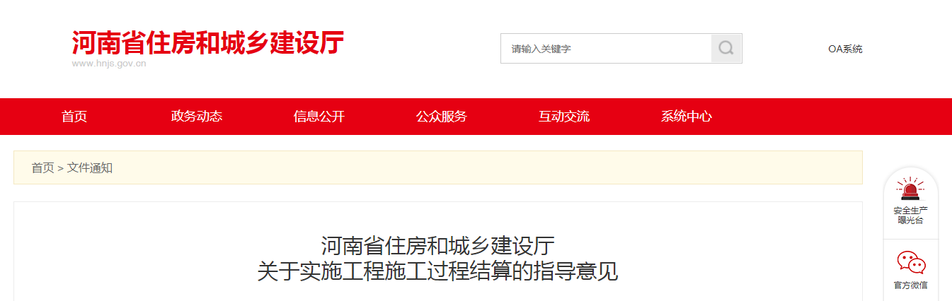 2020年7月23日,河南省住建厅下发《关于实施工程施工过程结算的指导意见》。