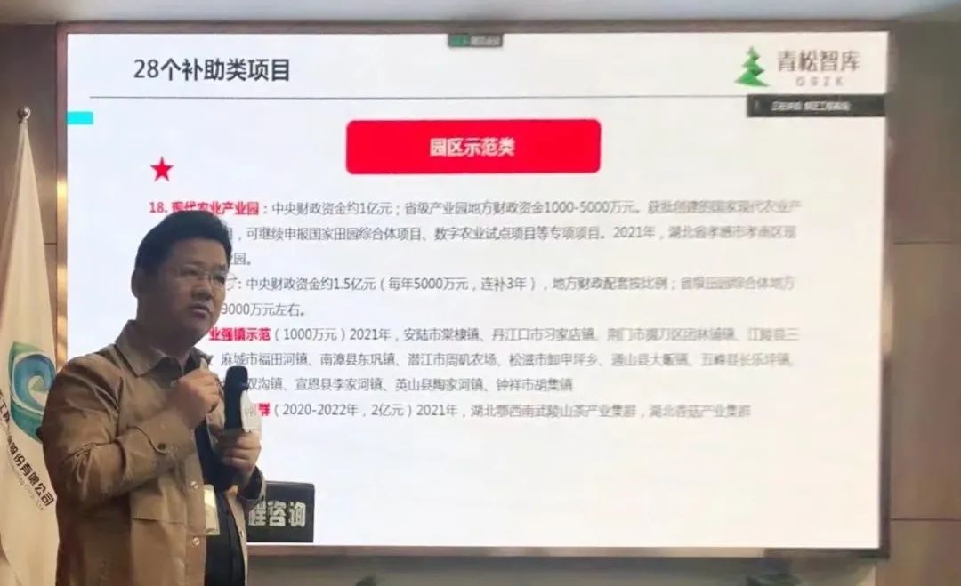 "从政府、企业和农户的痛点,2021年农业补贴重点项目,国家现代农业产业园落地实操,国家现代农业产业园案例解读和乡村振兴的实施计划五个方面阐述国家重点农业项目申报相关政策及流程,并结合分享了乡村振兴相关的典型案例。"