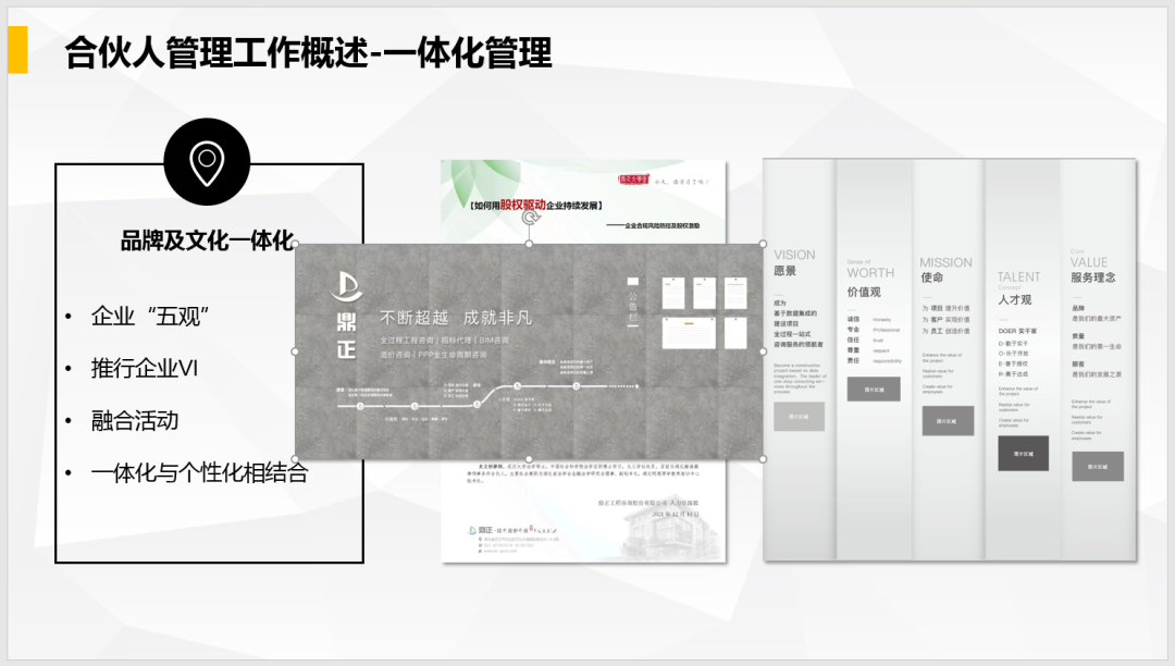 4、合伙人管理部:即将推进合伙人风控工作组工作,梳理总结,识别分析,从质量成果、档案用印、财务管理、税务筹划等方面入手,加强安全合规管理。