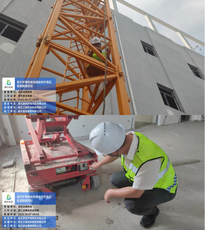 6月7日,医疗护理和疾控感染防护用品智能制造项目总监理工程师陈雄对施工现场进行塔吊、物料提升机、施工升降机、吊篮、临时用电进行联合检查,现场抽检施工单位的安全生产规范。此次检查以安全生产细化管理为要求,以查隐患、找短板、促整改、防事故为目的。安全是确保工程质量的前提条件,质量是建设单位所追求的最终目标,安全则是实现这一目标的基本环境条件,安全监理是这一环境条件的保护神。