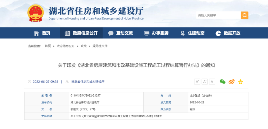 近日,湖北省住建厅联合湖北省财政厅、湖北省公共资源交易监督管理局印发了《湖北省房屋建筑和市政基础设施工程施工过程结算暂行办法》(以下简称《暂行办法》),截至目前,全国已有近30省市区发文明确施工过程结算。