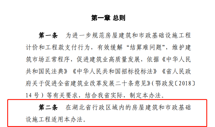 自本办法实施之日起,湖北省内的房屋建筑和市政基础设施工程适用本办法,不区分资金性质。施工工程是否必须适用本《暂行办法》,则需结合项目进展情况而定:已进行招投标或已签订合同的工程,仍按原约定执行,已发包暂未确定中标单位的,招标人可发布澄清公告对结算方式进行变更,也可以按原约定继续进行。