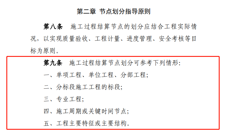1.施工过程结算节点划分