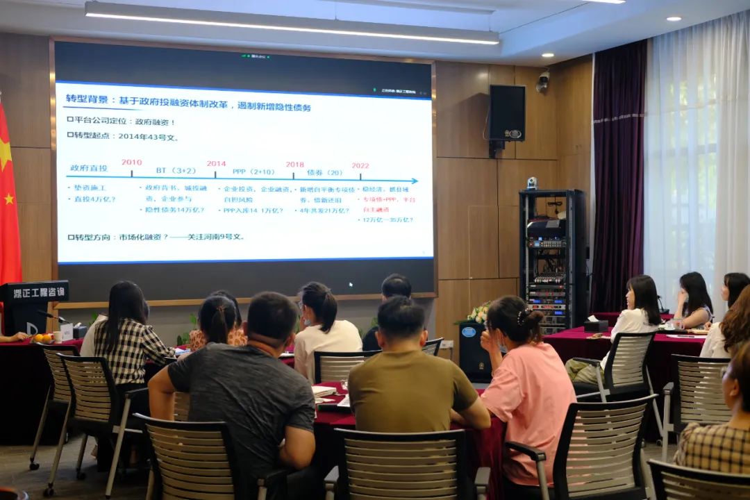 在两个小时的分享中,杨总从政府投融资平台公司的前世今生,系统介绍了政府投融资体制改革背景、政府投融平台公司转型发展思路、工程咨询企业与政府投融平台公司合作模式。