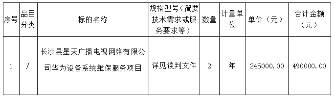 长沙县星天广播电视网络有限公司华为设备系统维保服务项目谈判成交公告
