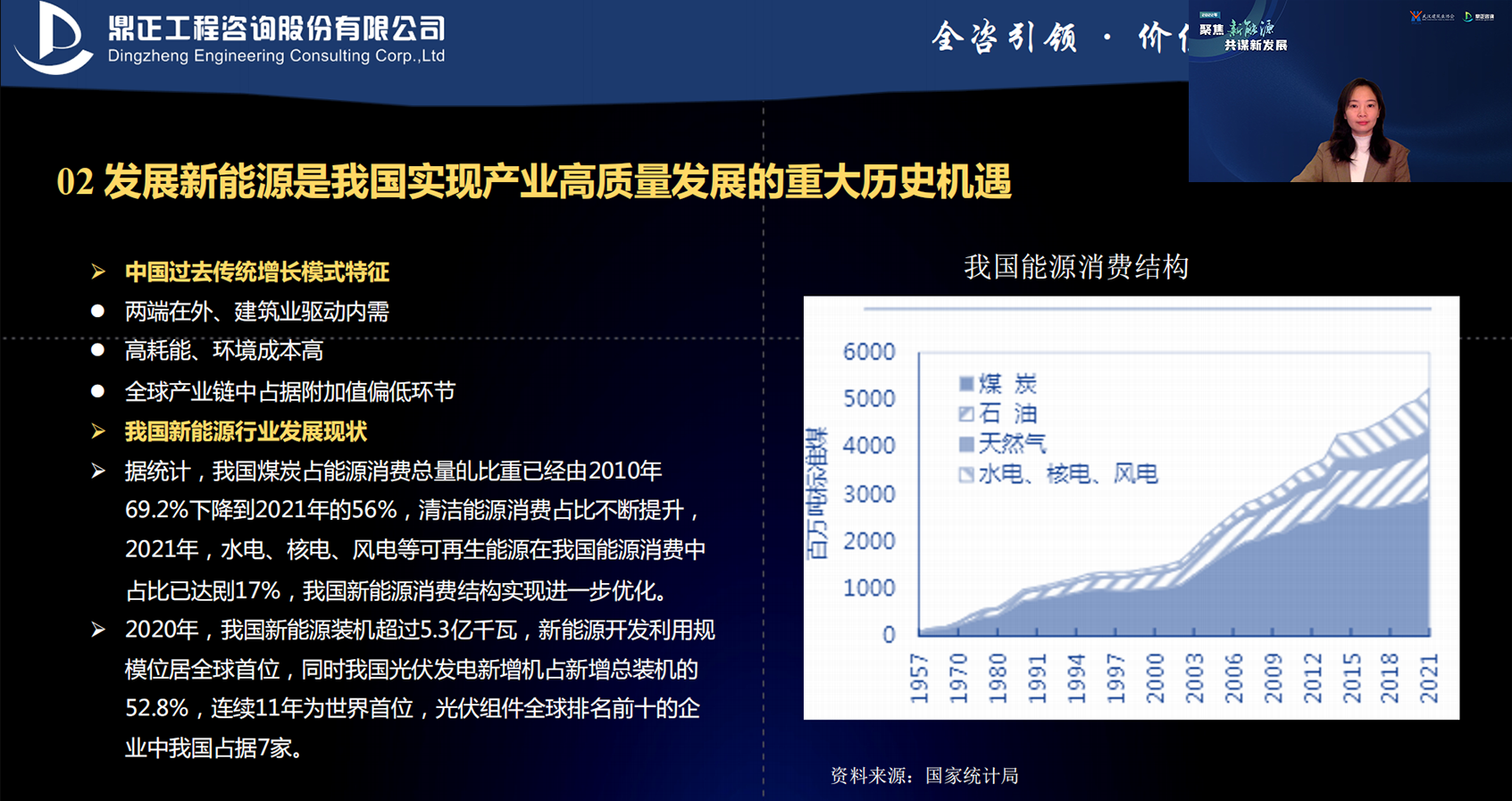 明胜m88官网工程咨询产业咨询师常梦醒以“新能源产业政策研究”为主题,介绍了我国新能源产业的发展现状,重点解读了新能源行业的相关政策和未来发展趋势,并从工程咨询角度出发,介绍了明胜m88官网近年来在绿色能源项目积累的先行经验,给出了未来发展新能源产业的相关工作建议,为工程咨询企业进入新能源市场提供思路与参考。