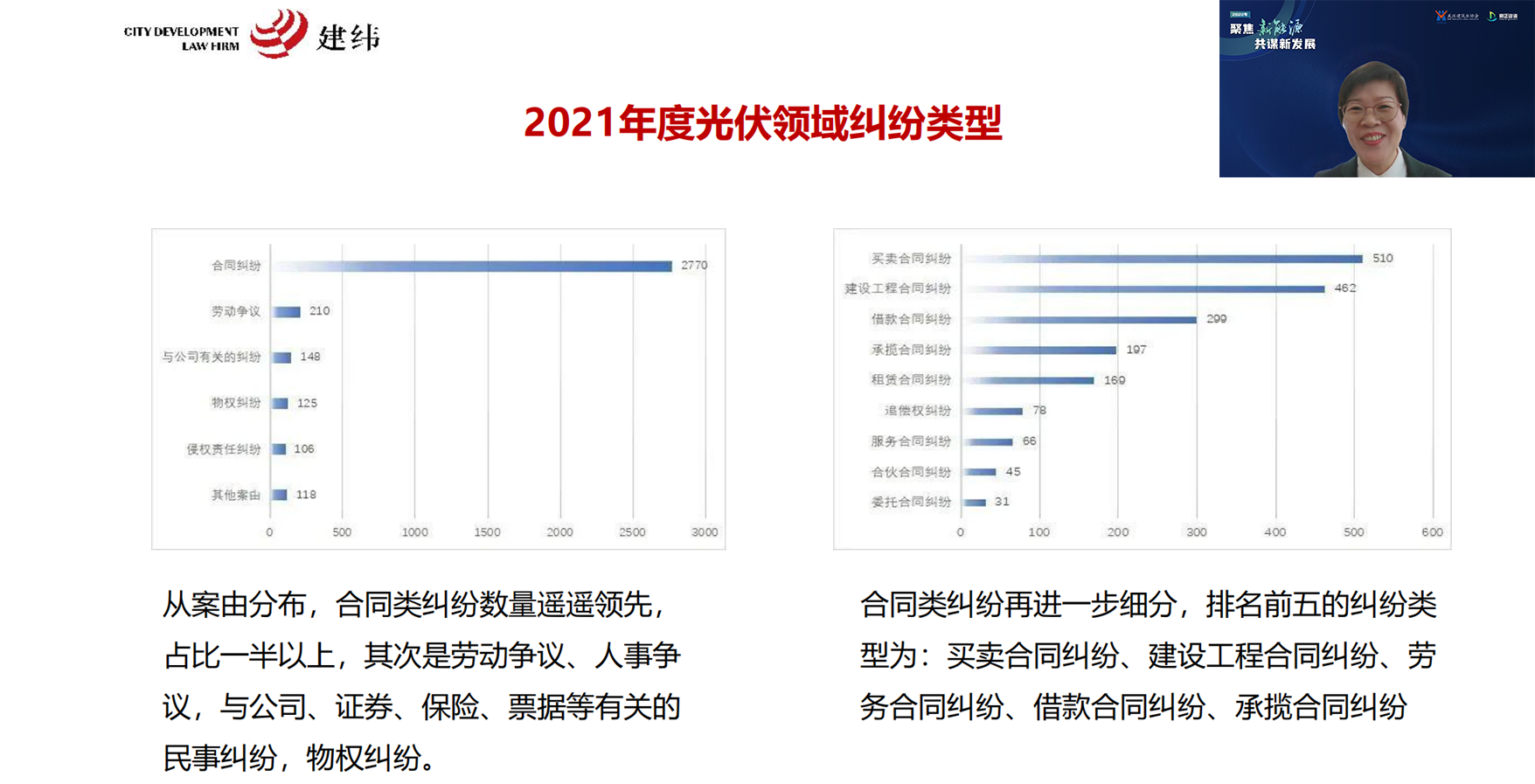 上海建纬(太原)律师事务所张晓玲律师,从纠纷数量、省级地域、纠纷类型三个方面分析了新能源纠纷项目,总结了新能源项目法律风险特点,并以服务案例为主线,讲述了企业应如何识别风险、评估风险以及采取相应的措施。