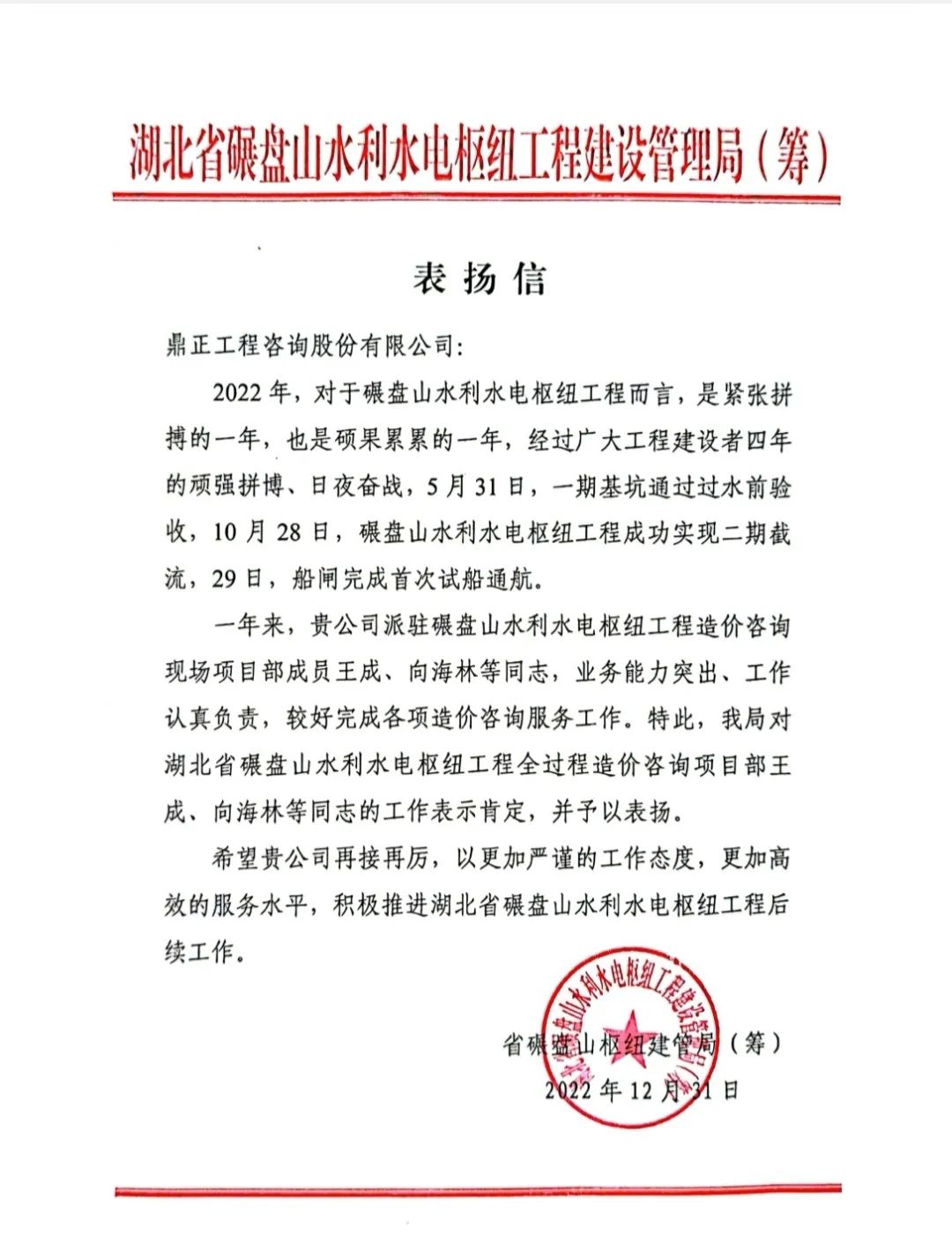 碾盘山水利水电枢纽工程,是国务院确定的172项节水供水重大水利工程之一。明胜m88官网作为该项目的全过程造价咨询单位,积极主动推进工程进度,在2022年度共计出具各类报告35份,助力碾盘山项目二期围堰截流和船闸试通航的关键节点交付。工程变更往往带来工程量与价的变化,从而影响工程造价,在全过程造价咨询服务过程中,我们多次深入现场进行实地勘察计量,主动推进过程结算,及时处理施工过程中的变更签证,并为帷幕化学灌浆费用节省工程投资的38%。同时,我们加强对各工程建设的事前、事中、事后监管,及时归集整理项目相关技术经济资料,做到“一户一档”,为项目稳步推进打下了良好基础。