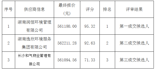 中标供应商:湖南润恒环境管理有限公司