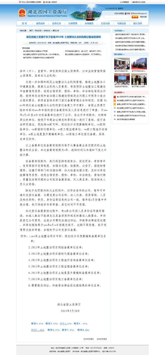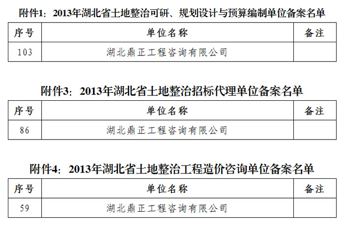 祝贺我司所有相关业务均通过湖北省国土资源厅2013土整从业机构备案