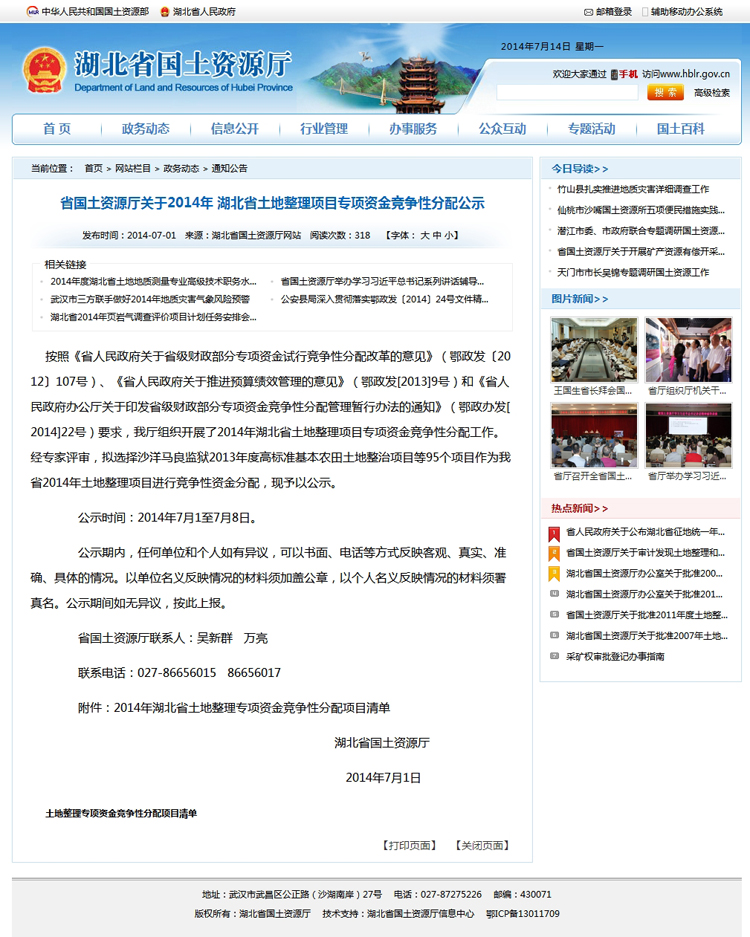 2014年湖北省土地整理专项资金竞争性分配项目清单 |