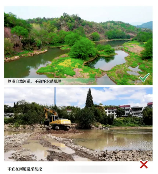 1.提倡保护自然河道,反对乱采乱挖
