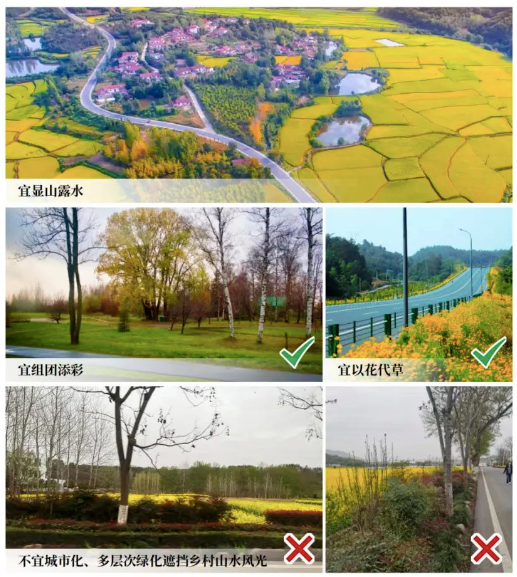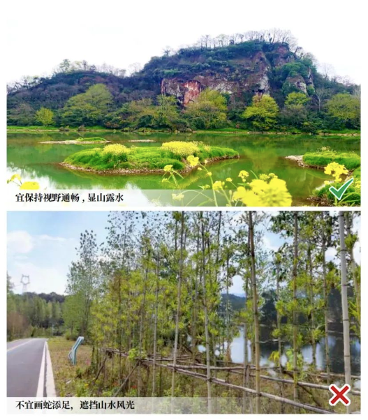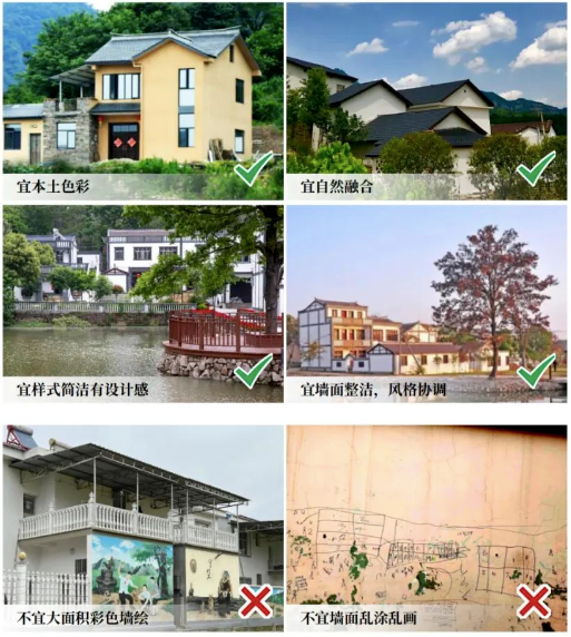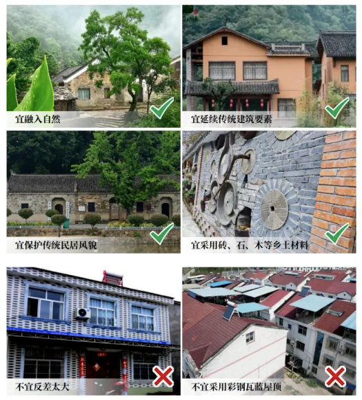 《指引》指出,要重点绘好三张图,即总体平面图、基础设施公共服务布局图、产业发展图,深入挖掘乡村的生态价值、经济价值、文化价值、美学价值。建设时,要保护林地、保护自然河道、提倡“自然做功”,村庄环境要扫干净、码整齐、收通豁、种美观,新建房屋要选址安全、空间立体、平面协调、风貌整体、文脉延续,优先利用闲置房,再到集镇旁,集中建成宜居房。