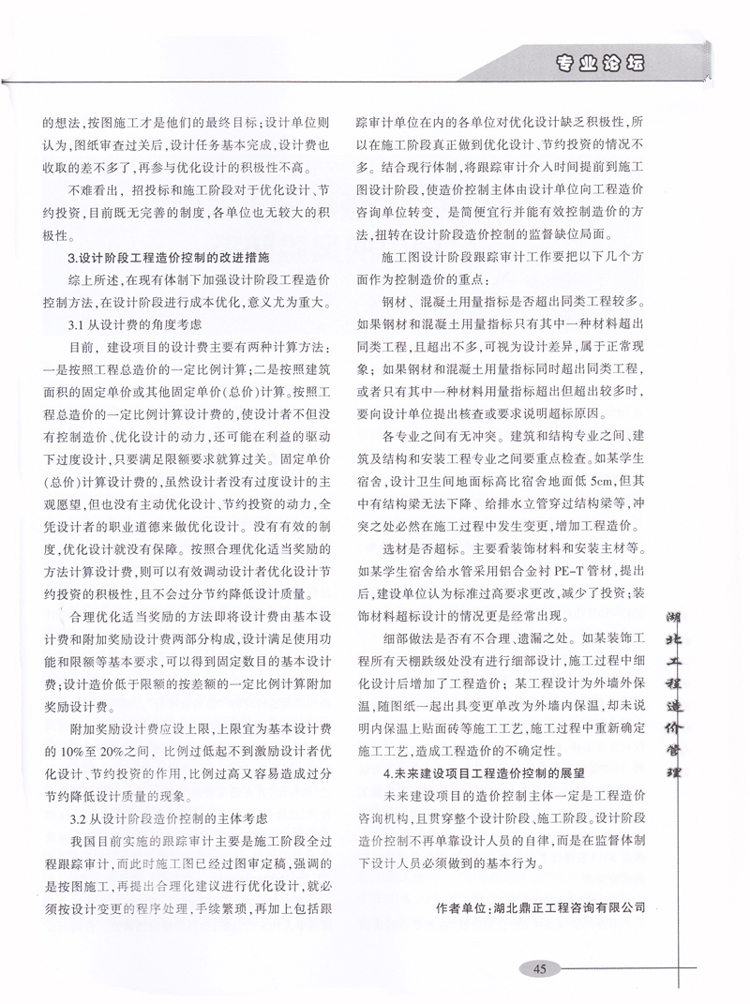 祝贺我司李光洲同志所著文章《浅谈建设项目在设计阶段的造价控制》在全国工程造价管理类优秀期刊《湖北工程造价管理》2014年第4期“专业论坛”板块发表。