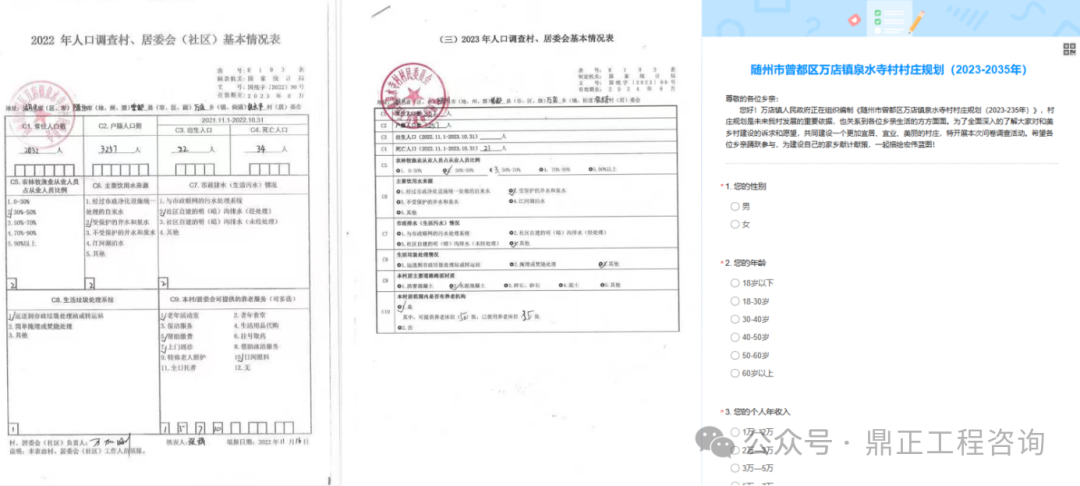 一方面,通过制定村庄基础资料调查表、调查问卷,向村委及村民收集资料,充分掌握规划范围内的自然资源状况、人口状况、土地利用、各类基础设施建设、产业发展和社会经济发展等基础资料。
