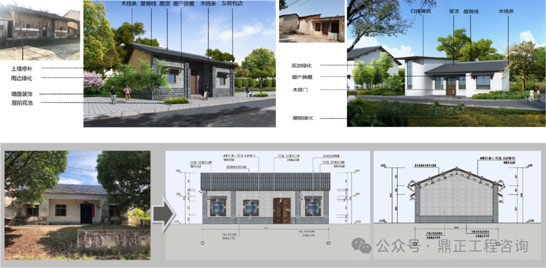 在建筑美化方面,通过建筑整体色彩协调、立面美化、增加装饰、宅前屋后绿化等措施,实现对建筑的整改。其中对于历史建筑风貌整治,要在不改变历史建筑原状的原则下,对民居进行部分修缮。同时整治历史建筑的周围环境,提升整体环境质量。
