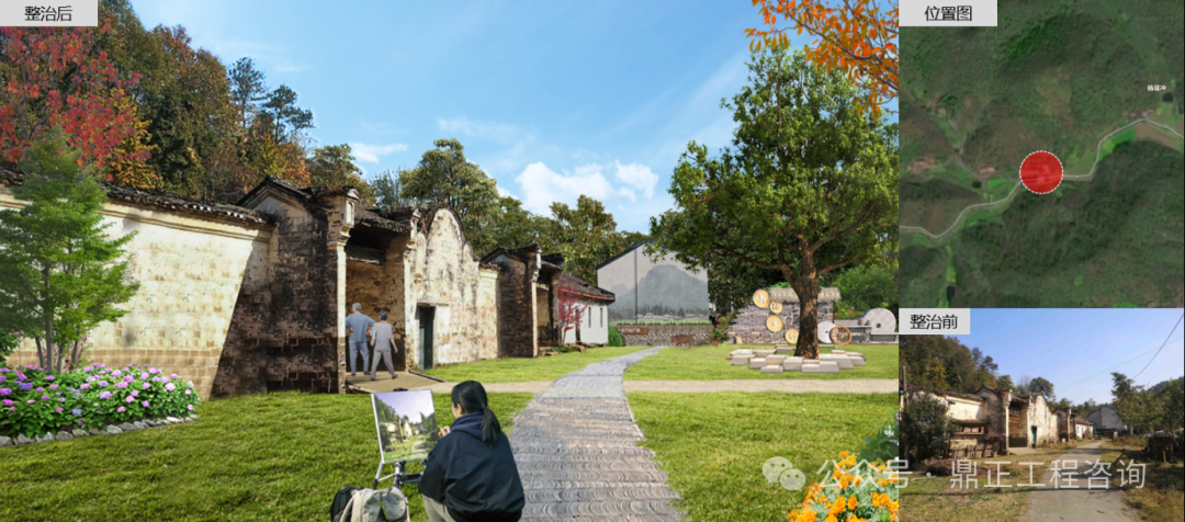 四村规划在强化基础支撑体系下,主要通过居民点规划、建筑整治、公共空间整治等方面改善乡村人居环境。