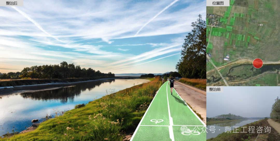 对双河村漂水河驳岸进行整治,对水系进行清淤(恢复河床)、清障(疏通河道)、清理垃圾(清洁河道)、保持河道流畅干净。对现状岸边植物杂灌木清除梳理,局部可增补色叶植物,丰富季相变化。增加滨水休闲步道,打造滨水开放空间。