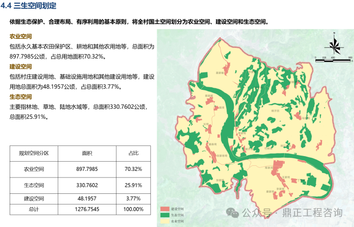 同时,按照“山水林田湖草”系统修复治理的要求,落实生态保护红线,明确森林、河湖等生态空间,有序开展农村全域土地综合整治,整体推进农用地整理、建设用地整理、乡村生态保护修复。落实上位国土空间规划中确定的空间分区分类管控要求,统筹安排生态、农业和建设三类空间。