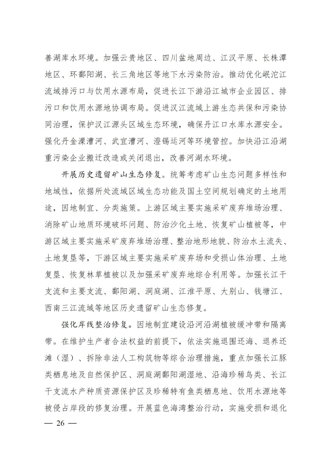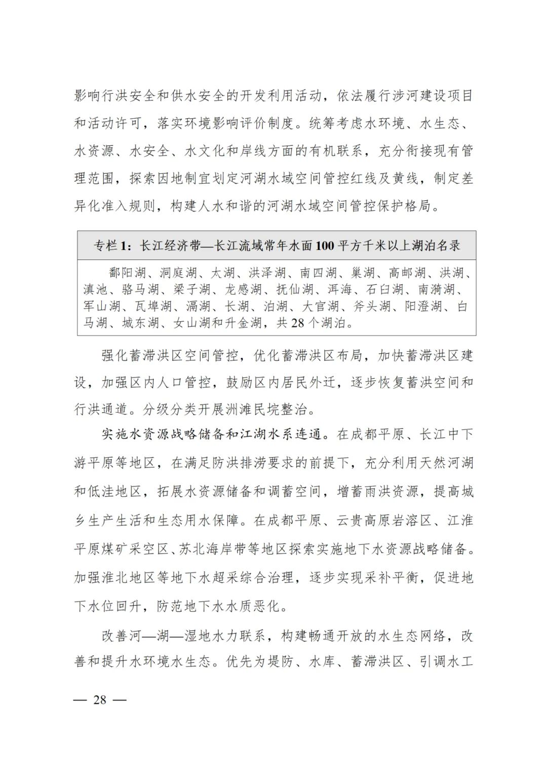 加快蓄滞洪区工程与安全建设,强化蓄滞洪区土地利用、产业引导、人口规模管控。开展洲滩民垸分类治理。充分考虑气候变化引发的极端天气影响和防洪形势变化,科学提高长江流域防洪工程标准。支持水库群等水工程联合调度,发挥防洪工程体系整体优势。