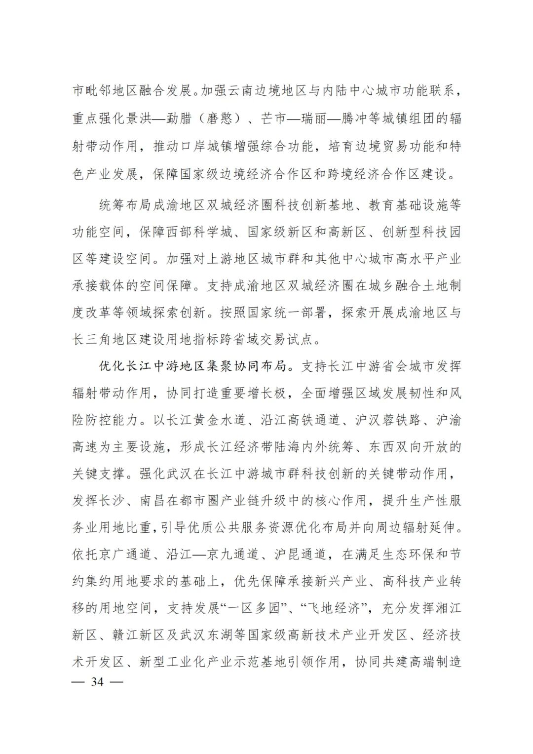 强化长江经济带范围内城市群、都市圈和中心城市网络联结。支持建设沿江、呼南等高速铁路主通道,保障长三角、长江中游、成渝地区双城经济圈与京津冀、珠三角城市群间多径路的高速铁路通道空间需求。