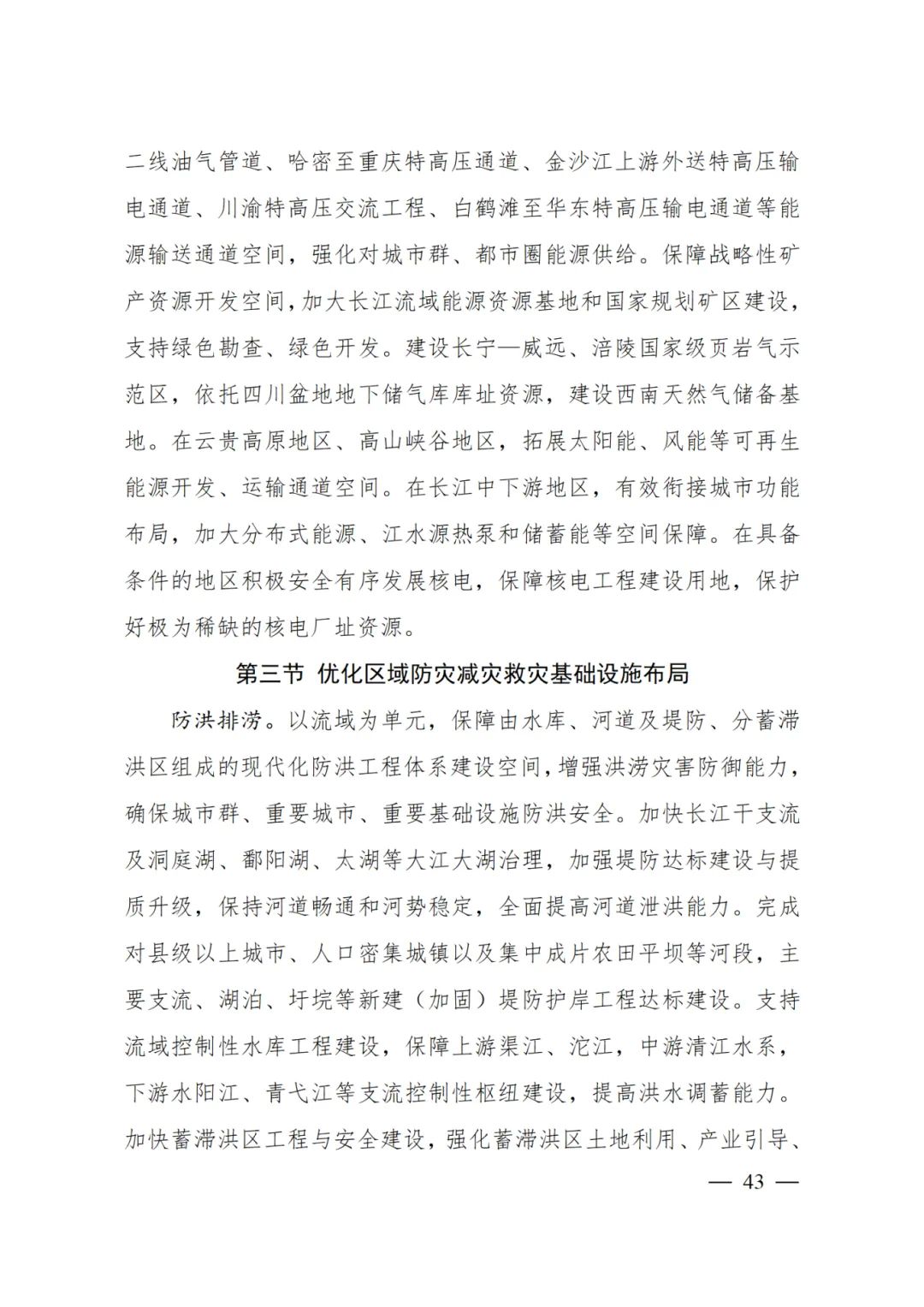 在云贵高原地区、高山峡谷地区,拓展太阳能、风能等可再生能源开发、运输通道空间。在长江中下游地区,有效衔接城市功能布局,加大分布式能源、江水源热泵和储蓄能等空间保障。在具备条件的地区积极安全有序发展核电,保障核电工程建设用地,保护好极为稀缺的核电厂址资源。