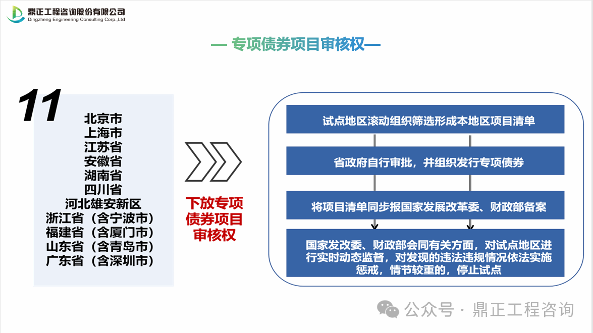地方政府专项债券项目“自审自发”试点地区名单:北京市、上海市、江苏省、浙江省(含宁波市)、安徽省、福建省(含厦门市)、山东省(含青岛市)、湖南省、广东省(含深圳市)、四川省、河北雄安新区等11个省市。