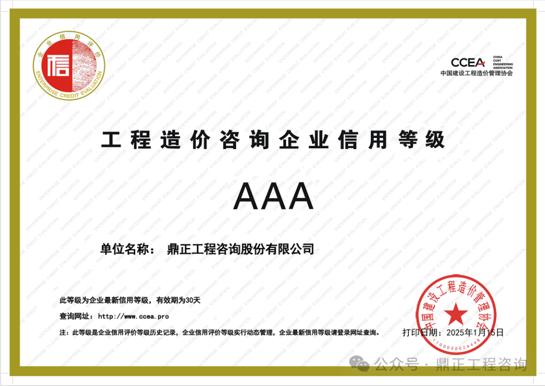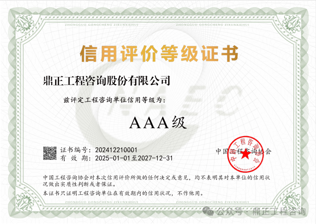 近日,中国工程咨询协会发布了2024年度工程咨询单位信用评价公告,明胜m88官网凭借优异的诚信建设和信用管理能力,荣获“AAA级信用等级”评价。
