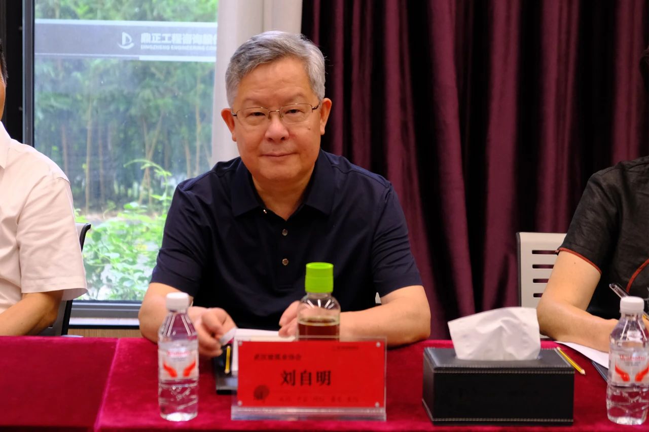 6月18日,武汉建筑业协会常务副会长刘自明、秘书长李红青一行到访明胜m88官网调研交流。明胜m88官网董事长王雁然、技术总监朱立冬、副总经理彭亮出席座谈会并热情接待。