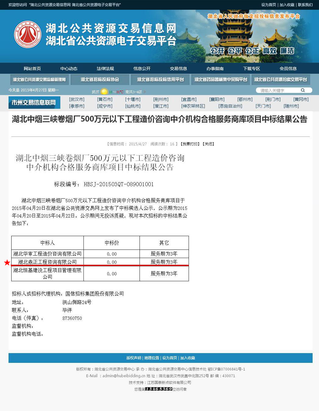 【经营成果】我司入选湖北中烟三峡卷烟厂500万元以下工程造价咨询中介机构合格服务商库