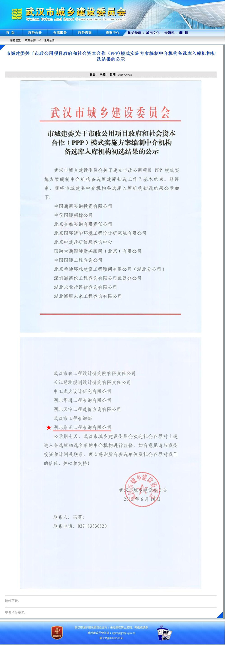 【经营成果】我司入围市城建委关于市政公用项目政府和社会资本合作(PPP)模式实施方案编制中介机构备选库