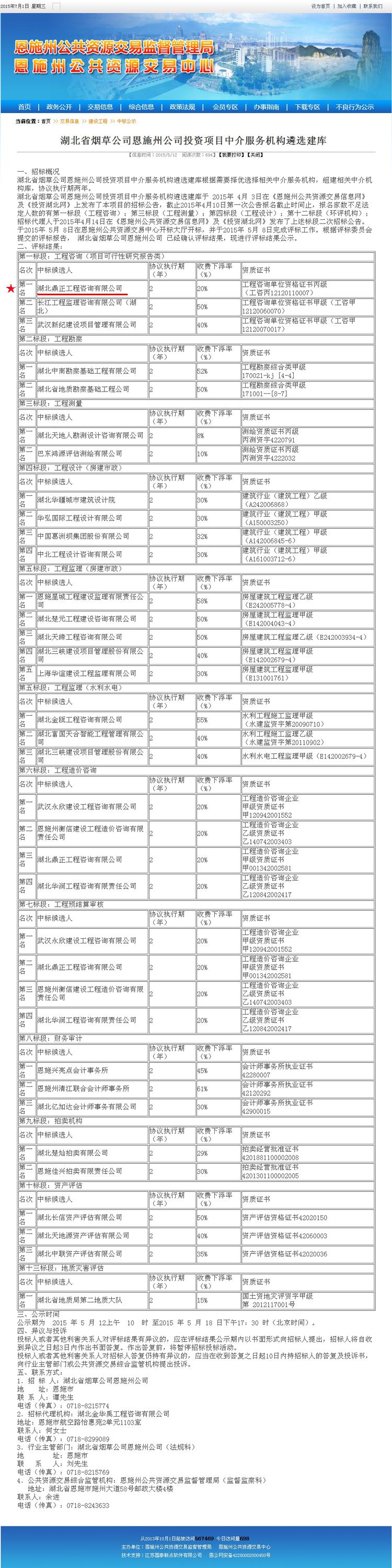 【经营成果】我司入选湖北省烟草公司恩施州公司投资项目工程咨询中介服务机构库