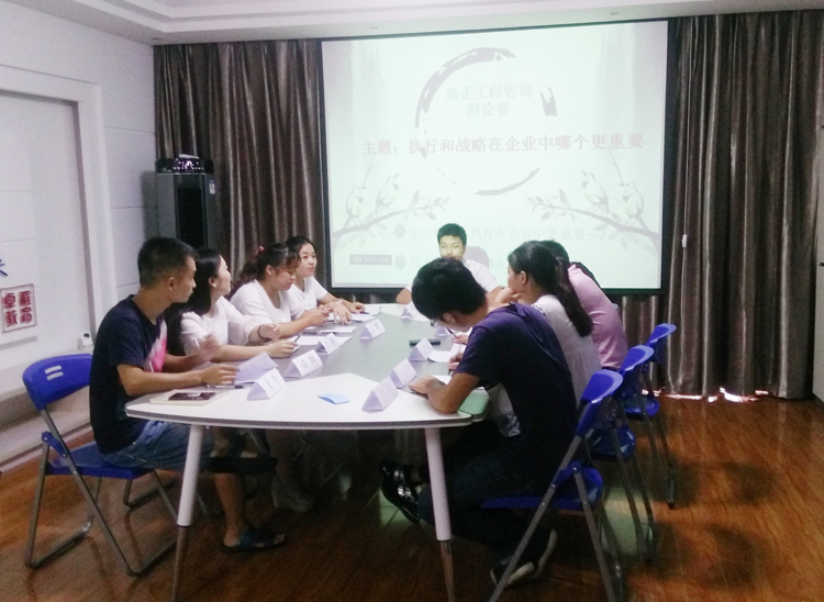 2015年9月5日下午,在卓成教育培训中心,恩施分公司员工之间进行了一场主题为“执行和战略在企业中哪个更重要”的辩论赛,正方观点“执行力在企业中更重要”,反方观点“战略在企业中更重要”。工程咨询行业,技术型员工居多,每天和数据打交道,突然要用博大精深的文字来辩论,感觉是有些不适应,且对于大多数员工来说,参加工作后第一次参与这种形式的活动,刚开始大家都有点拘束,但经过一番思想斗争和简单的准备,最终决定迎难而上,正反双方队员通过立论并引经据典分别立足双方观点。最为紧张和激烈的当属自由辩论环节,正方双方辩手唇枪舌战,充分展现了各自的逻辑思维、临场应变及语言表达能力.......辩论赛在评审团的掌声中结束,经过评审团的综合评比,最终评定获胜方为反方,评选出正反双方“最佳辩手”各一名,并颁发奖状。虽说这次辩论赛不成熟,但是在很大的程度上激发了员工的潜力,是“脑力激荡”的很大范例。