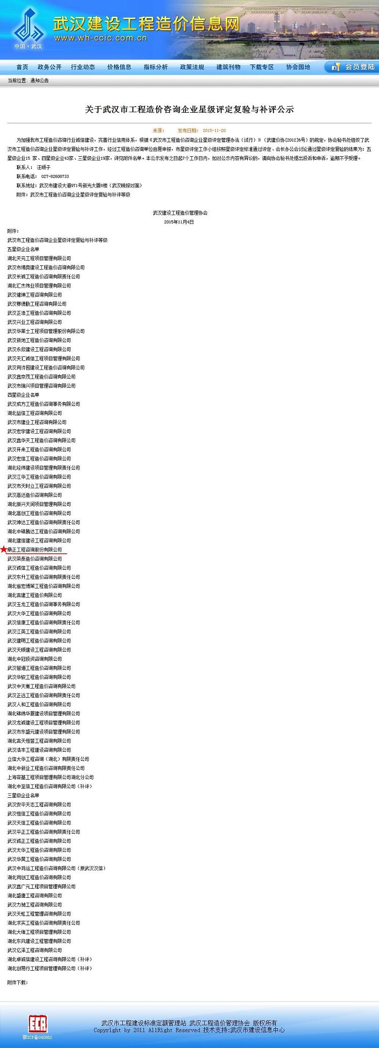 我司获武汉市工程造价咨询企业星级评定四星级企业称号