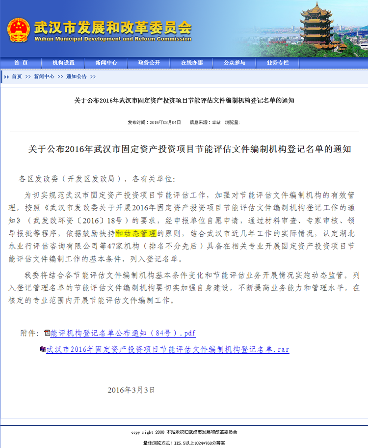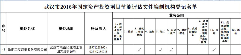 【经营成果】我司入选2016年武汉市固定资产投资项目节能评估文件编制机构登记名单