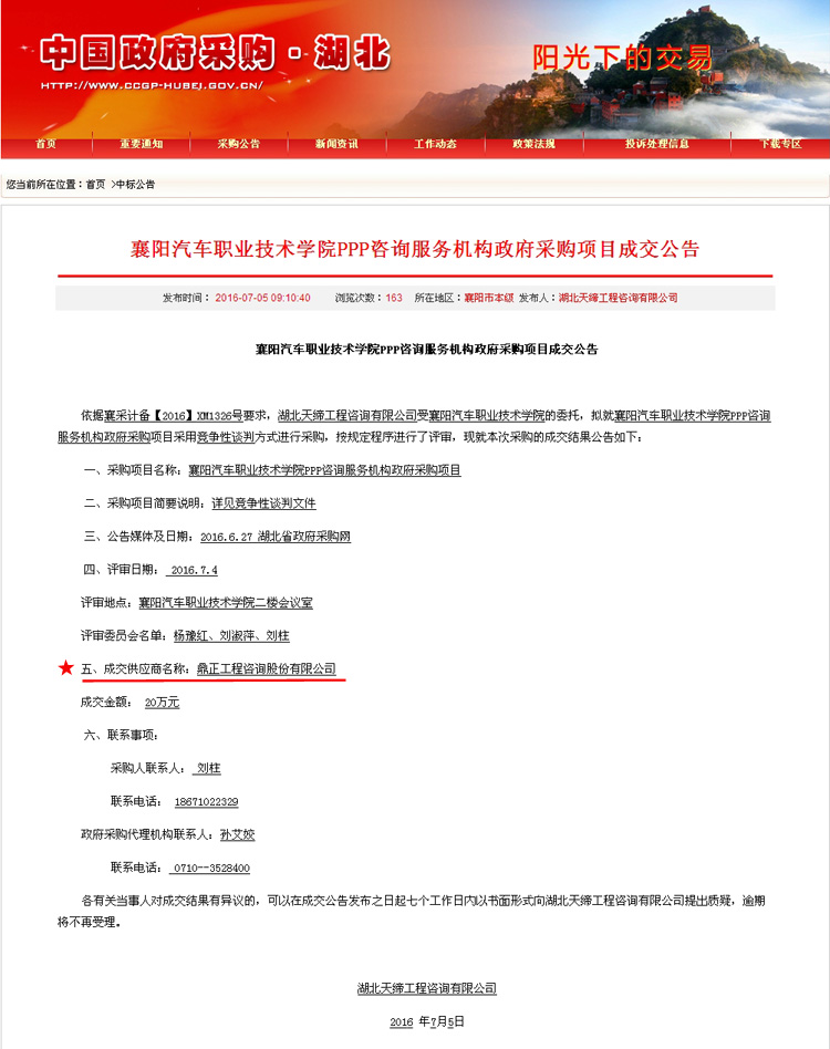 【经营成果】我司中标襄阳汽车职业技术学院PPP咨询服务机构政府采购项目