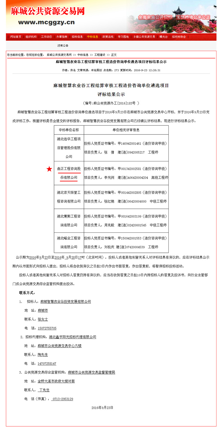 【经营成果】我司入围麻城智慧农业谷工程结算审核工程造价咨询单位库