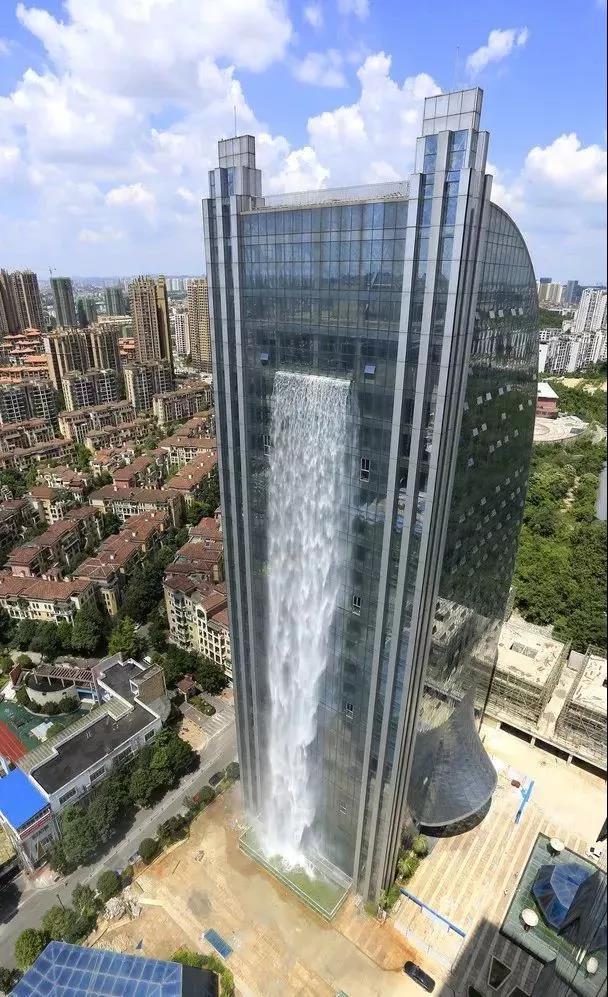 据大厦相关负责人介绍,这是烈变广场设计的一个景观瀑布,楼层总高有121米,瀑布设计高度为108米,现在是贵阳市唯一的瀑布大厦,在瀑布正下方,是一个大型的蓄水池,瀑布用的水平时就储存在水池里。