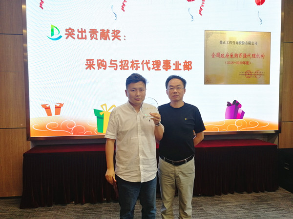 值得一提的是,今年七月我司凭借专业的服务、完善的内控制度从近千家政府采购代理机构中脱颖而出,获得首届“全国政府采购百强代理机构(2018-2019年度)”荣誉称号,这一荣誉称号离不开采购与招标事业部全体成员积极主动的参评。董事长王雁然为采购与招标事业部颁发突出贡献奖,并号召大家向采购与招标事业部学习大局意识和吃苦耐劳的工作作风。