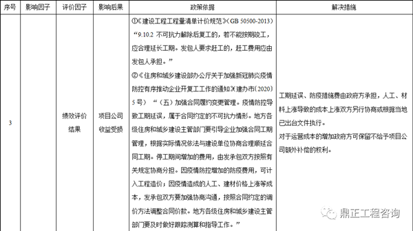 综上所述,疫情对PPP项目的影响为三个方面,一是政府补贴支付延期;二是绩效评价评分降低;三是项目公司收益受损。