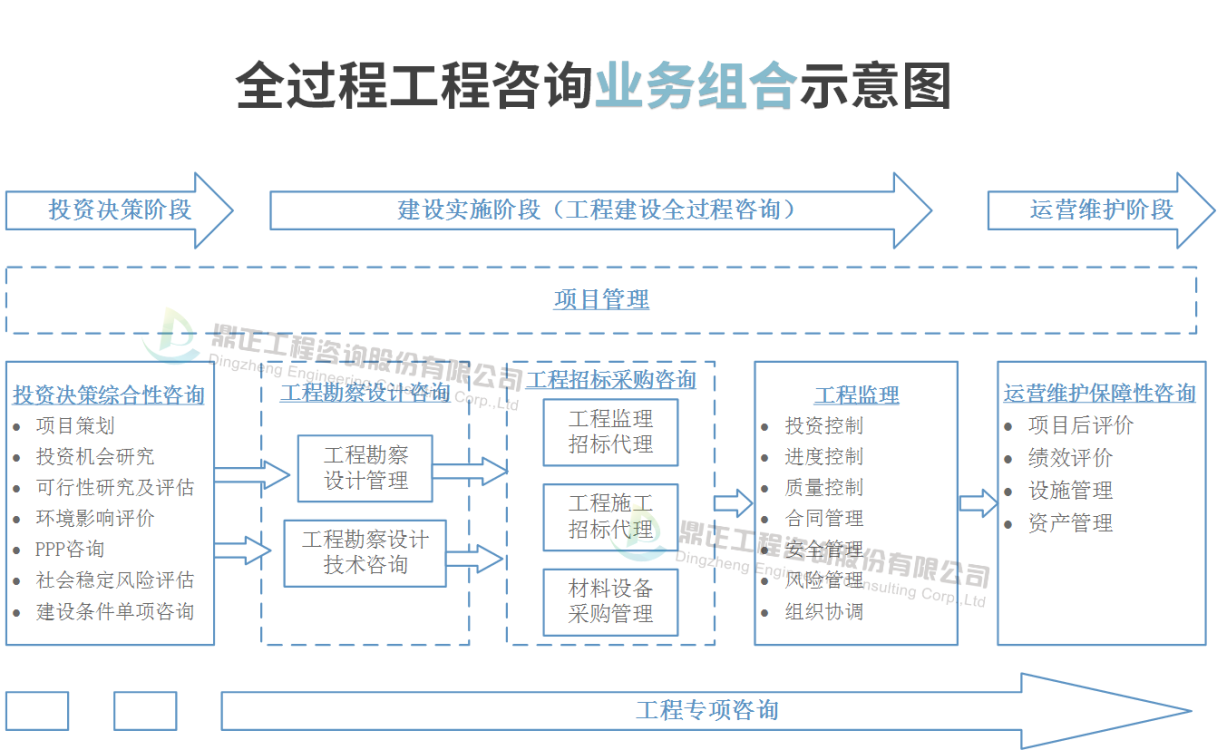 全过程工程咨询是指工程咨询方综合运用多学科知识、工程实践经验、现代科学技术和经济管理方法,采用多种服务方式组合,为委托方在项目投资决策、建设实施乃至运营维护阶段持续提供局部或整体解决方案的智力性服务活动。