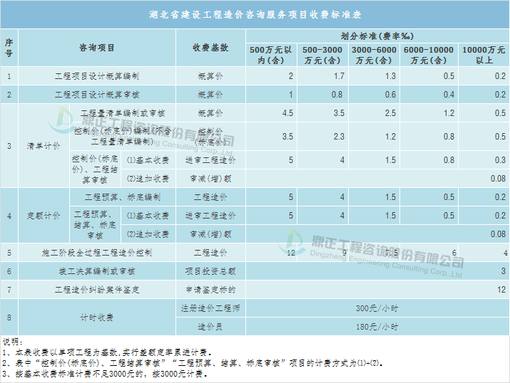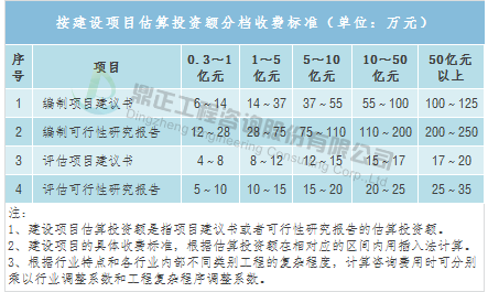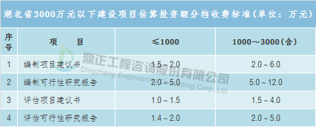 投资决策咨询包括编制项目建议书、编制可行性研究报告、评估项目建议书、评估可行性研究报告等,取费可参考《国家计委关于印发建设项目前期工作咨询收费暂行规定的通知》(计价格〔1999〕1283号),该文件提出了投资额在3000万元以上的建设项目前期工作咨询收费标准,而投资额3000万元以下的建设项目由各省自行制定,如湖北省制定了相应的地方标准——《省物价局关于制定估算投资额3000万元以下建设项目前期工作咨询收费标准的通知》(鄂价房服〔2001〕107号),具体收费标准根据估算投资额在收费标准相对应的区间内用插入法计算。