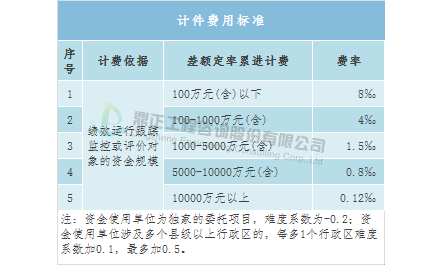 全咨单位参与预算绩效管理服务取费可参考地方收费标准,如湖北省地方标准——《湖北省财政厅关于印发<湖北省第三方机构参与预算绩效管理工作暂行办法>的通知》(鄂财绩规〔2014〕3号),绩效运行跟踪监控和绩效评价全部委托服务采用计件收费方式的,以绩效运行跟踪监控或评价对象的资金规模为计费依据。付费额一般应考虑绩效运行跟踪监控或评价对象的资金总额、付费率、难度系数等因素。计算公式为:付费额=基本付费额×(1+难度系数)。基本付费额以收费标准为基准价,按差额定率累进方法计算。基本付费额计算公式为:基本付费额=Σ分段资金总额×付费率。难度系数主要根据委托项目的难易程度确定,由委托方与第三方机构在签订委托协议时,根据实际情况确定。项目后评价咨询服务取费可参考《国家发展改革委关于印发中央政府投资项目后评价管理办法和中央政府投资项目后评价报告编制大纲(试行)的通知》(发改投资〔2014〕2129号),根据该文件,后评价咨询服务取费标准按照《建设项目前期工作咨询收费暂行规定》(计价格〔1999〕1283号)关于编制可行性研究报告的有关规定执行。
